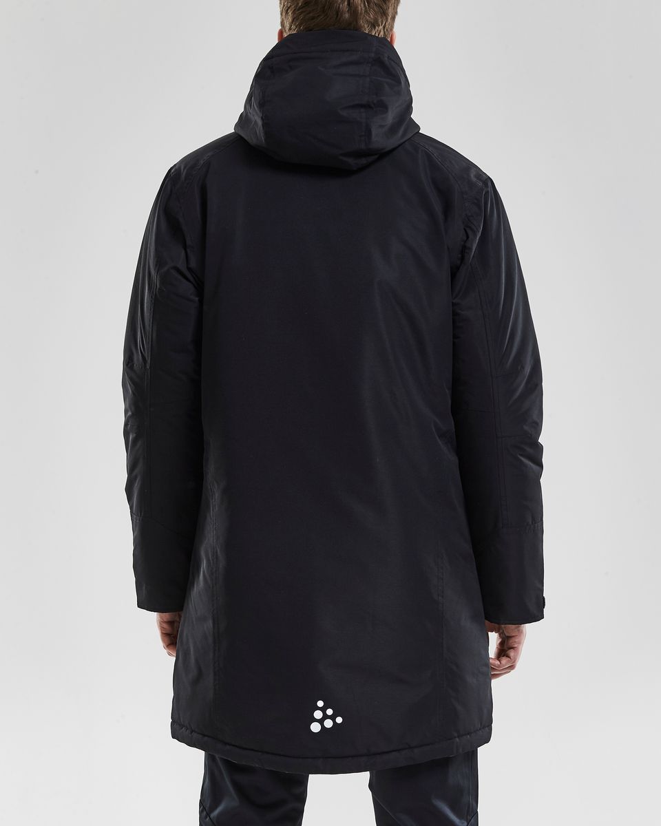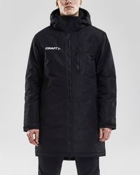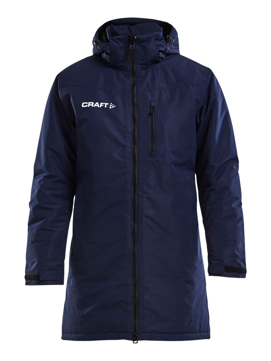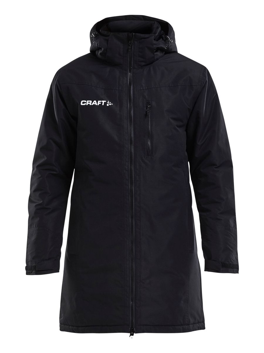 Padded, long jacket with durable outer fabric that makes a great choice for warm-ups in cold conditions or as a warm jacket for staff members and players on the bench. Features 2-way zipper, removable hood, six pockets and adjustable sleeve ends.